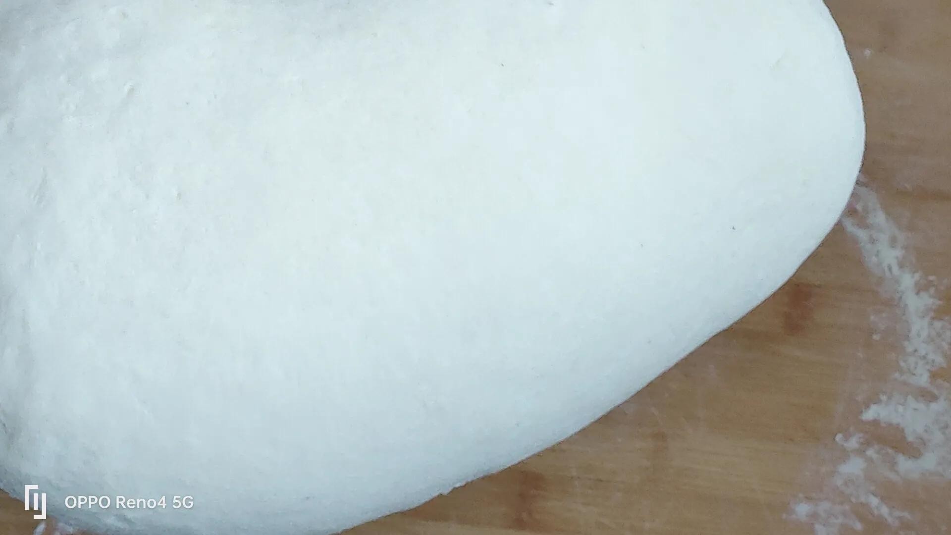 5,面发好了揉面排气,一定要多揉一会,不能偷懒呀!一定要揉到位,揉到没有大气孔。这是面皮蓬松喧软的关键。