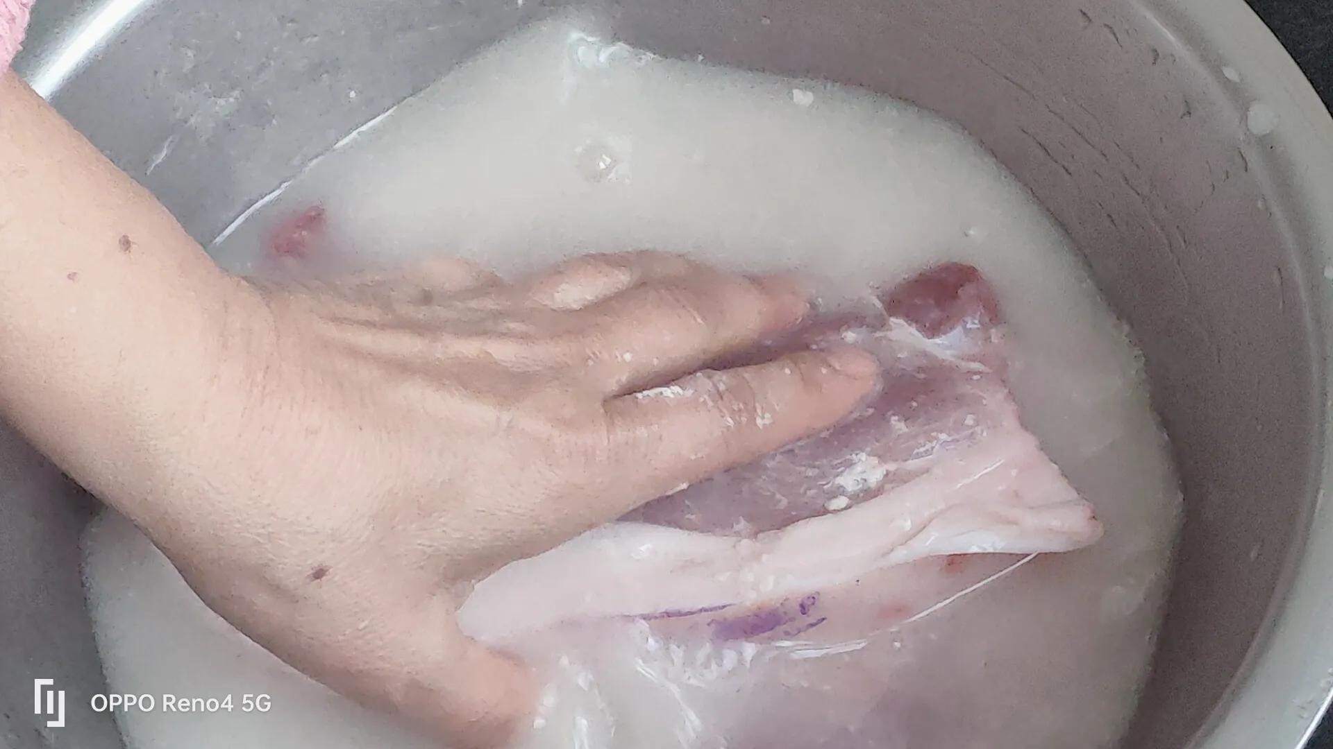 2,猪肉要用面粉水洗,很好去腥,去血水。