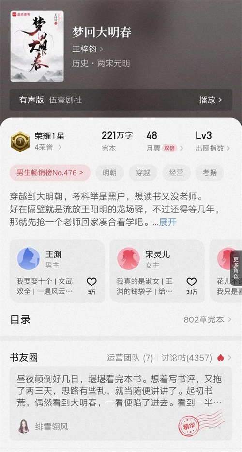 王梓钧的作品,从来不是“爽”在主角开挂,而是“爽”在“真实”。他笔下的重生者不会一键满级,而是靠“野性思维”在时代缝隙中翻滚;他的历史文不靠“圣母光环”,而是用“细节考据”还原真实人性。从90年代的深圳到明末的战场,他总能用“反套路”的叙事,把“年代文”和“历史文”写成“社会观察笔记”。