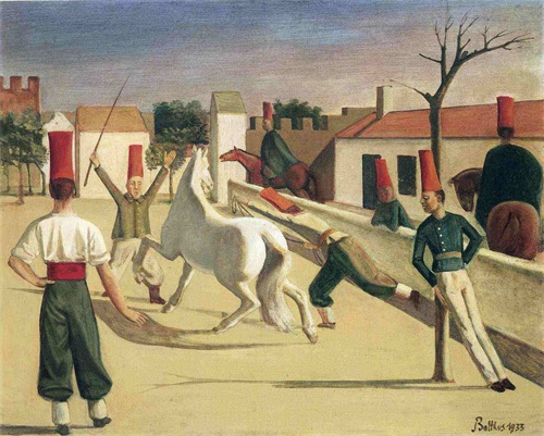 巴尔蒂斯才华横溢,是天生的艺术家,从未受到正规美术教育,却不妨碍他成为20世纪最后的巨匠。通过临摹名画直接获得体验绘画的本质。他在罗浮宫临摹过普桑的古典绘画,在意大利托斯干模仿过弗朗切斯卡的壁画,其空间的处理、清淡的色彩与朴拙的造型,对巴尔蒂斯启示颇大。