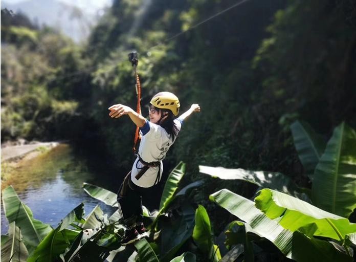 旗山水磨坊位于旗山山脚下,是这两年新兴的周末遛娃,亲朋友好相聚,公司团建拓展的好去处,水磨坊为一个农庄,农庄位于旗山脚下,农庄内有竹排,手摇船,香蕉船,攀岩,真人cs,攀树乐园,高空溜索,烧烤,野炊,采摘,团餐,住宿,会议室,ktv,烤全羊,麻将室,景区住宿,舞台,可举办年会,篝火晚会。周末到这边,可以远离城市的喧嚣,约上三两个好友,徜徉于山水间,在竹排上嬉戏,玩耍,饿了可以中午预订好烧烤或者野炊柴火灶,三五个好友一起动手煮饭,烧烤,享受美味佳肴。吃完饭后下午还可以体验园区的项目,在丛林中穿越——飞跃丛林,在战火中鏖战——真人CS,如果累了,晚上还可以在园区住上精致的民宿,远离城市的喧嚣。唯一不足的话是水磨坊是有收门票的哦,大门票30元/人,包含了竹排、手摇船、橡皮艇,其他游玩项目有另外收费。