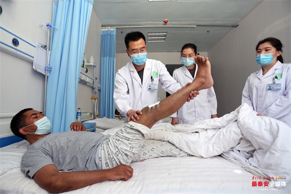 今年2月,新建的岳普湖县人民医院正式搬迁新址。除下乡义诊外,郝建和另外7位泰安援疆医生便在这里一边接诊一边讲课。援疆医生、岳普湖县人民医院中医康复医学科主任匡乃峰刚到医院时发现,康复科只做一些基本门诊工作, 离二甲医院的规范康复科标准差距很大。于是,他便从零开始给科室医护人员授课,每天下班后在办公室针对病例进行讲解。几个月过去了,目前,康复科医护人员已有19人,开放床位基本处于满员状态。匡乃峰说:“现在,科室医护人员已经熟练掌握基本的医疗康复手段,但先进的技术理念还在学习进步中,每周还会进行至少两次培训。”