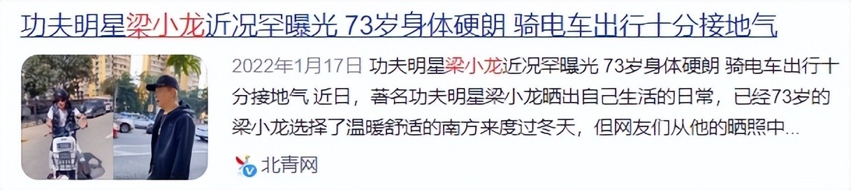 1、功夫明星梁小龙近况罕曝光 73岁身体硬朗 骑电车出行十分接地气)北青网2022年1月17日