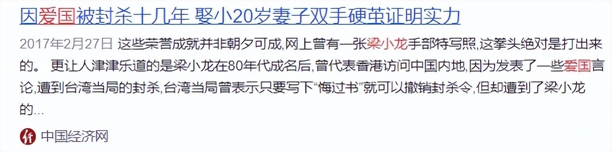 梁小龙的这段话无异于讲明了自己的政治立场,这在那个社会背景下是一个极其敏感的事,许多电影投资人为了不得罪台湾当局,都拒绝再与梁小龙合作,直接将其封杀。