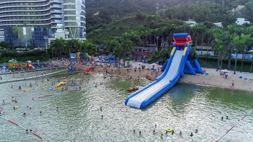 如果你想找一个藏在市区的避暑纳凉胜地的话,位于圭峰山国家森林公园龙潭景区内的新会龙泉山泉水沙滩水乐园是个不错的选择。这里有水上网红桥、章鱼滑梯、儿童水寨、水滑轮、沙滩……“这里最特别的是水质,是来源于圭峰山源源不断的天然山泉水。” 水乐园相关负责人陈经理介绍,水乐园水域面积约8000平方米,游乐设施丰富,风景优美,是大人、小孩的消暑好去处。