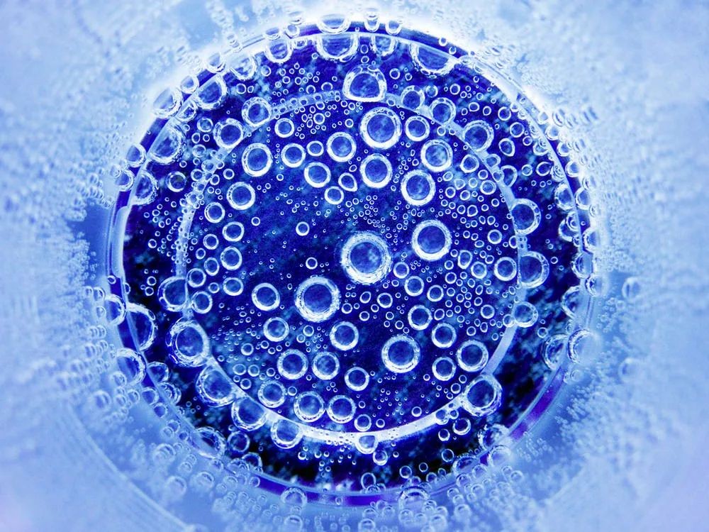 而微气泡和超声波,则是通过物理作用来实现清洗效果:在水中产生无数个微小的气泡(直径通常小于50μm),附着在被清洗的果蔬表面;这些气泡非常不稳定,很快就会坍缩,周围的水就会迅速填满气泡本来占据的空间,从而对果蔬表面产生冲击,在瞬间产生巨大的压强,将果蔬表面附着的细菌、有机物冲刷下来。