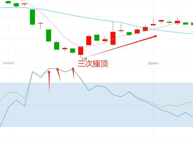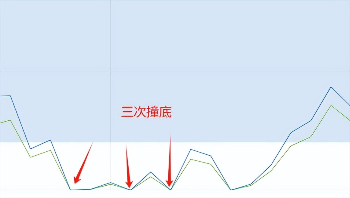 最后是第三种情况——连续撞底。当价格处于超买区域的时候,冲击底部数值 0,这便是撞底。一旦连续三次撞底,那就说明是见顶信号,这个时候就应该考虑卖出了。如果你不信,你随便找几个龙头股看看的,就会发现它具有这样的特点。通过对威廉指标这三种情况,我们可以在实际的股票操作中更好地把握买卖时机,