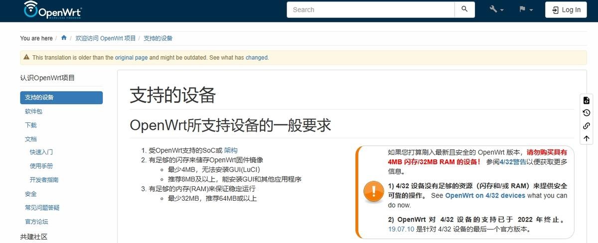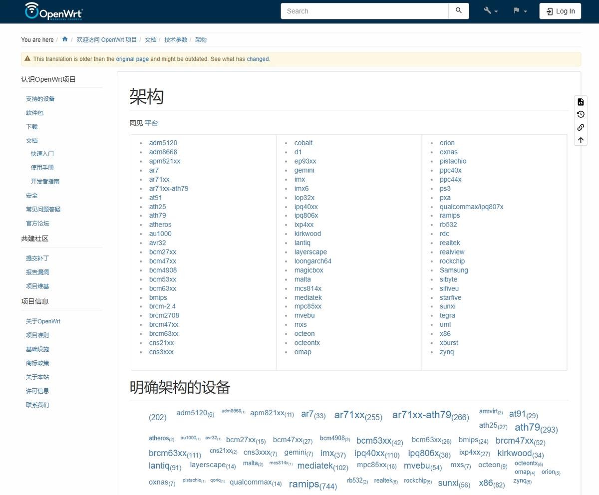 这是openWRT支持的硬件,可以看到它对硬件的要求不是很高,而且支持的架构相当多,很多路由器都可以刷openWRT系统。