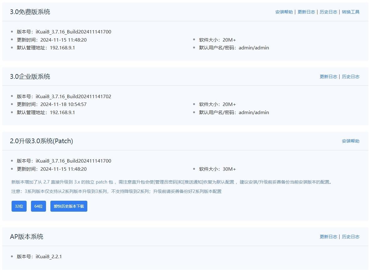 现在ikuai系统的版本分免费版、企业版。