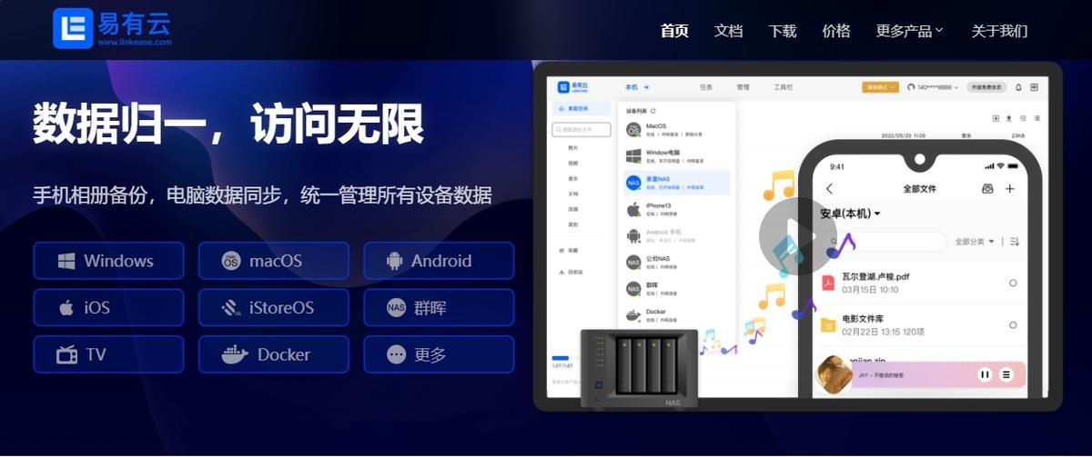 istroeOS还可以安装易有云,实现全平台统一管理,进行手机、电脑等多终端数据同步管理。
