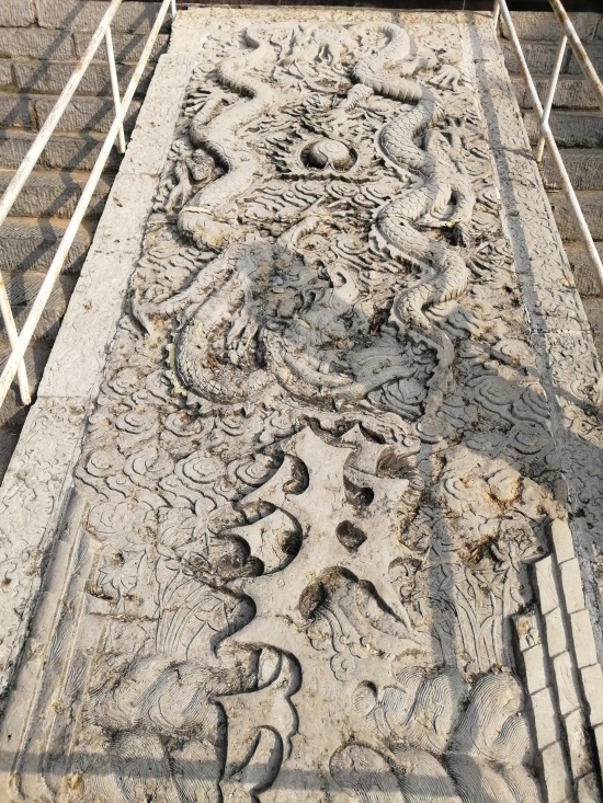 云龙宝珠陛石,雕刻精美,二龙栩栩如生。