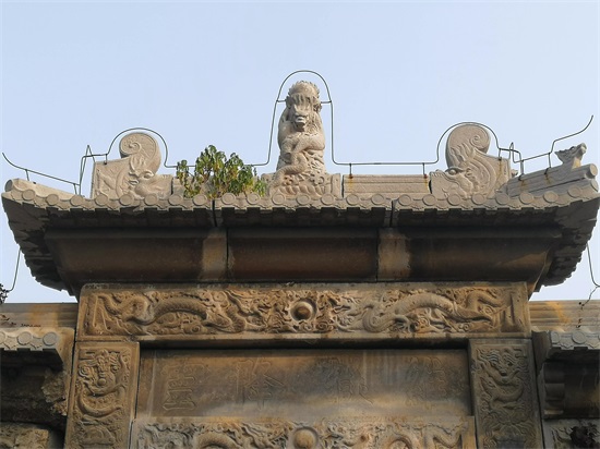维岳降灵牌坊~坊顶正中雕一立龙,头顶宝珠,脚踏海水,实属罕见。