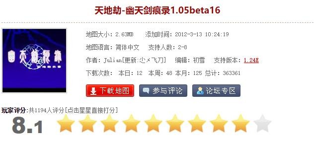 版本:幽天剑痕录1.05beta16,时间:2012.3.13,总下载数量:36万,玩家评分:8.1分