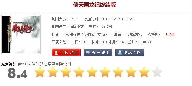 版本:倚天屠龙记终结版,时间:2008.2.20,总下载量:354万,玩家评分:8.4分
