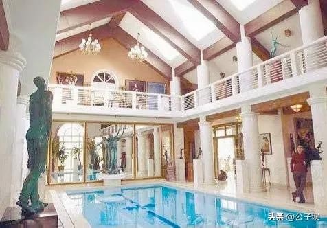 她家宽敞明亮,带室内游泳池。