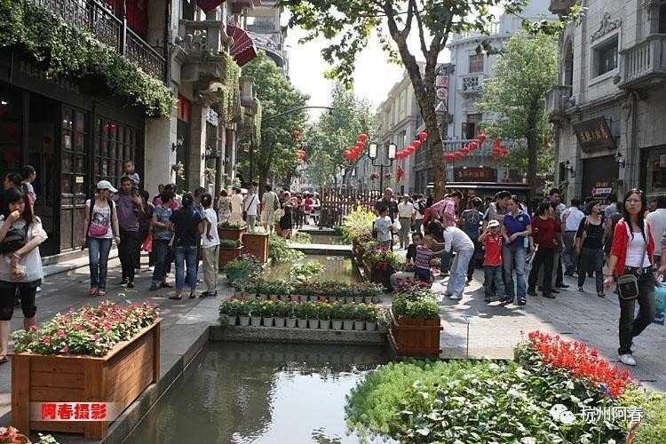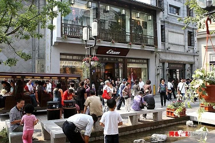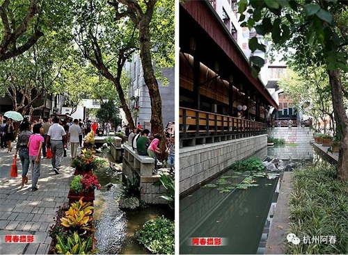 南宋御街与河坊街相交,原来是南宋临安城的中轴线,后来由建筑师王澍设计改建,修缮了原本的老房子,加入了流水景观,使它成了今天热闹而古朴的商业街。