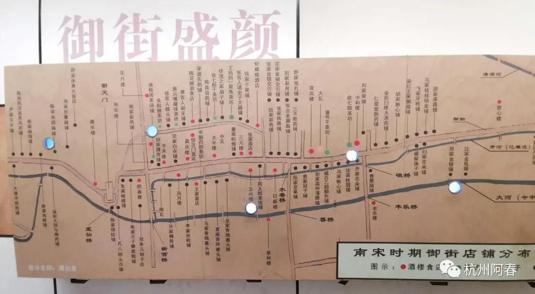 鼓楼是南宋御街南端上的标志性建筑,始建于五代吴越国,初名“朝天门”,楼上置钟鼓以报漏时,俗称鼓楼。该楼毁于南宋初年,至南宋定都临安(杭州)时,只残留两门阙。该楼也是南宋朝廷与市井的分界线,故有“前朝后市”之说,即由此向南,为南宋皇宫和三省六部等中央中枢机构,向北则为市井百姓经营居住游购之所。