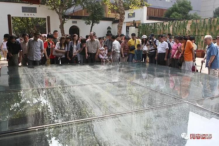 御街陈列馆门前的大玻璃下是考古发掘时在地下发现了不同历史时期的道路遗迹,这些遗迹自下往上分别叠铺着南宋的、元代的、明清及民国的道路、它们见证了百年古道发展史。