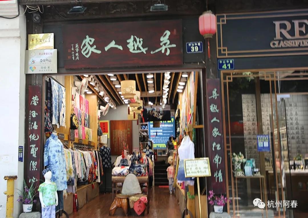 吴越人家;一新坊。也是早期杭州女装中的佼佼者,这里不仅是老街内的特色现代店铺,是文化创意体验平台,这里有文创非遗工作室,过江布染织、陶艺等手工制作,通过这种亲自实践的方式,让这个城市的历史文化也渐渐融入了人们的生活,成为不可或缺的一部分。