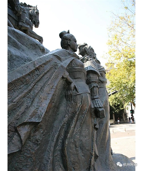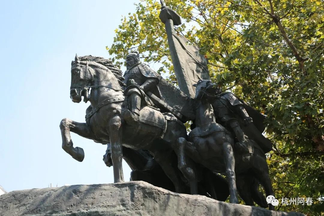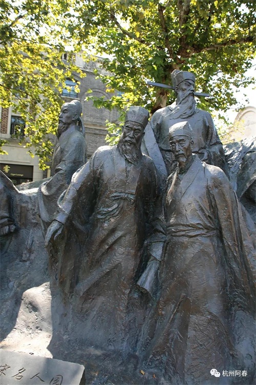 这座由 中国 美院创作的“南宋名人园”群体雕像,聚集了宗泽、李纲、岳飞、岳云、张宪、韩世忠、梁红玉、文天祥、范成大、周必大、陆九龄、朱熹、陆游、辛弃疾、李清照、杨万里、南宋四家(李唐、刘松年、马远、夏圭)等20位南宋时期的民族英雄、文人、画家,主旋律是抗金英雄。