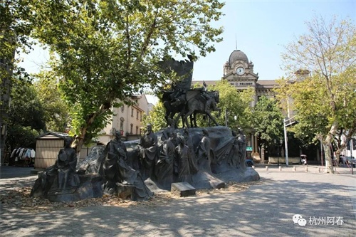 一座高7米,长13米的“南宋名人园”群体雕像出现在杭州南宋御街。