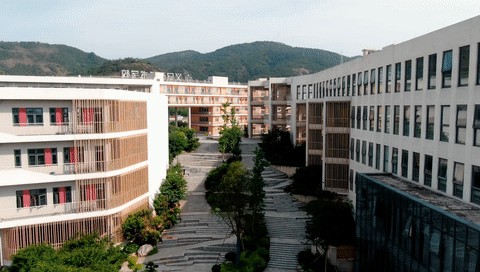 中心轴线以笔断意连之势,北起溪流对岸的音乐厅,跨过河流融入轴线,延绵的台阶依靠山势穿过校园。拾级而上,我们在两侧连续的建筑界面增设凸出的竖向平台,虚实结合,以白墙为载体,以竹木为点缀,形成强烈的材质对比,呈现空间可游可达的趣味感。