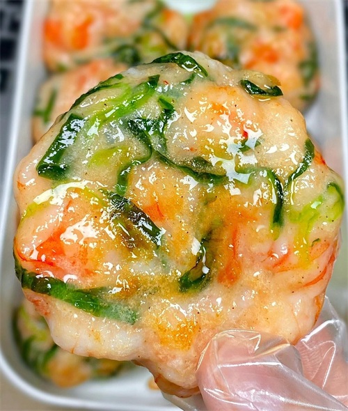 葱花鸡蛋裹虾仁则是一道简单却极具吸引力的小吃。打散鸡蛋液,加入适量剁碎的大葱,再放进处理好的虾仁一起煎熟,一整块金黄色油光发亮,看上去就食欲大增。一咬下去,葱香与蛋香融合,伴随着鲜嫩多汁的虾仁,美妙至极。