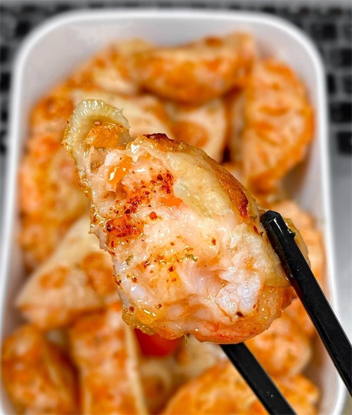 接下来是藕片夹虾滑,这是一道既有口感层次,又富含多种营养的小吃。将莲藕切成薄片,中间夹入弹滑爽口的虾滑,再用面糊裹住炸至表皮酥脆。这款藕片夹虾滑不仅色泽诱人,其独特的口感更是让人回味无穷。