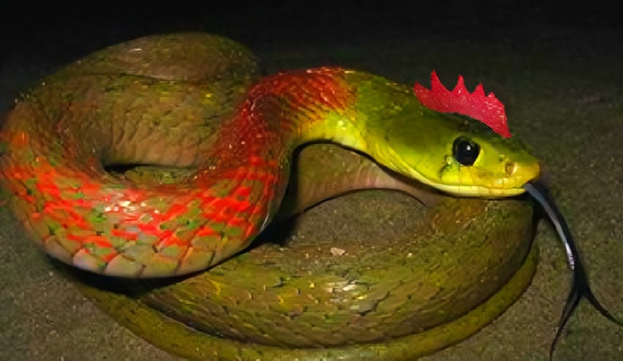 “鸡冠蛇”在民间传说中是一种非常危险的蛇,它们不仅有强烈的攻击性,还会发出类似母鸡的“咯咯咯”叫声。古籍《录异记》中也有关于“鸡冠蛇”的记载,描述它的头部像雄鸡,身长约一尺,围绕数寸,被其咬伤的人必定会丧命。