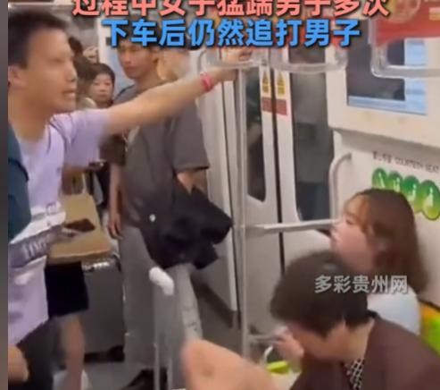 地铁又吵架了,这次更过分,直接动手,而且视频中那位女性直接对着男子的裆部踢了过去,看着就感觉到了疼痛。
