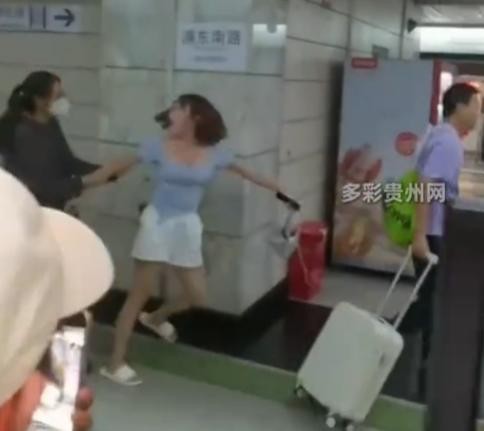 由于吵架吵输了,女生直接破防,从地铁上下去之后,追着那名男子打,拉着男子的书包不让走,甚至一边追嘴里一边大声叫喊。