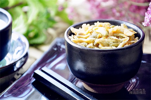 清口无腥味,就像龙井虾仁,但槐花是鲜的,味道更清新更脆嫩。