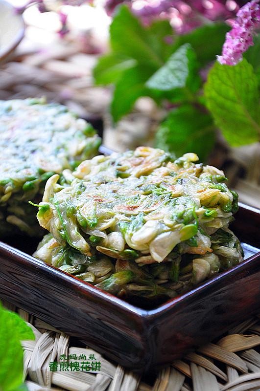 用含苞待放的小花苞煎槐花饼,清甜滋味更浓郁。