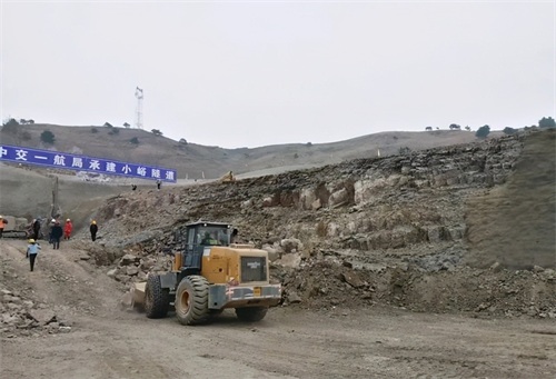 在位于卢龙县燕河营镇小峪村的遵秦高速B6标段小峪隧道施工现场,山坡上装载机、潜孔钻正在轰鸣作业,建设工地一派热火朝天的建设场面。B6标段总工吕光智告诉记者,小峪隧道是双洞小净距隧道,进洞口净距只有17.4米,再加上洞口属于冲积体,施工难度大,为保证建设进度,工程技术人员采用了暗挖明做的施工方式。