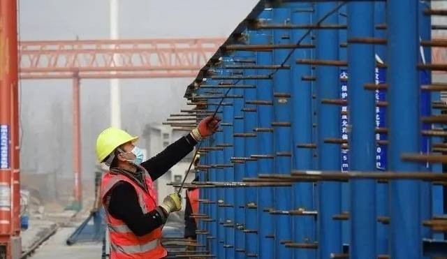 在由中交二航局承建的B10标段预制梁场预制区,现场忙碌而有序,工人们正在利用胎架进行钢筋绑扎,绑扎完成后将会整体吊装至台座,用于T梁预制。