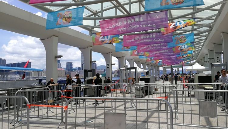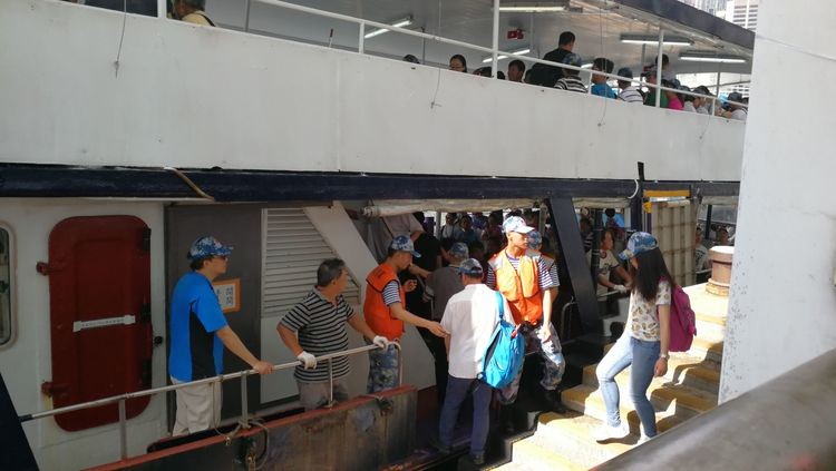 早晨我们来到香港十号公众码头,通过安检在码头等候搭乘接驳小轮前往辽宁舰参观。