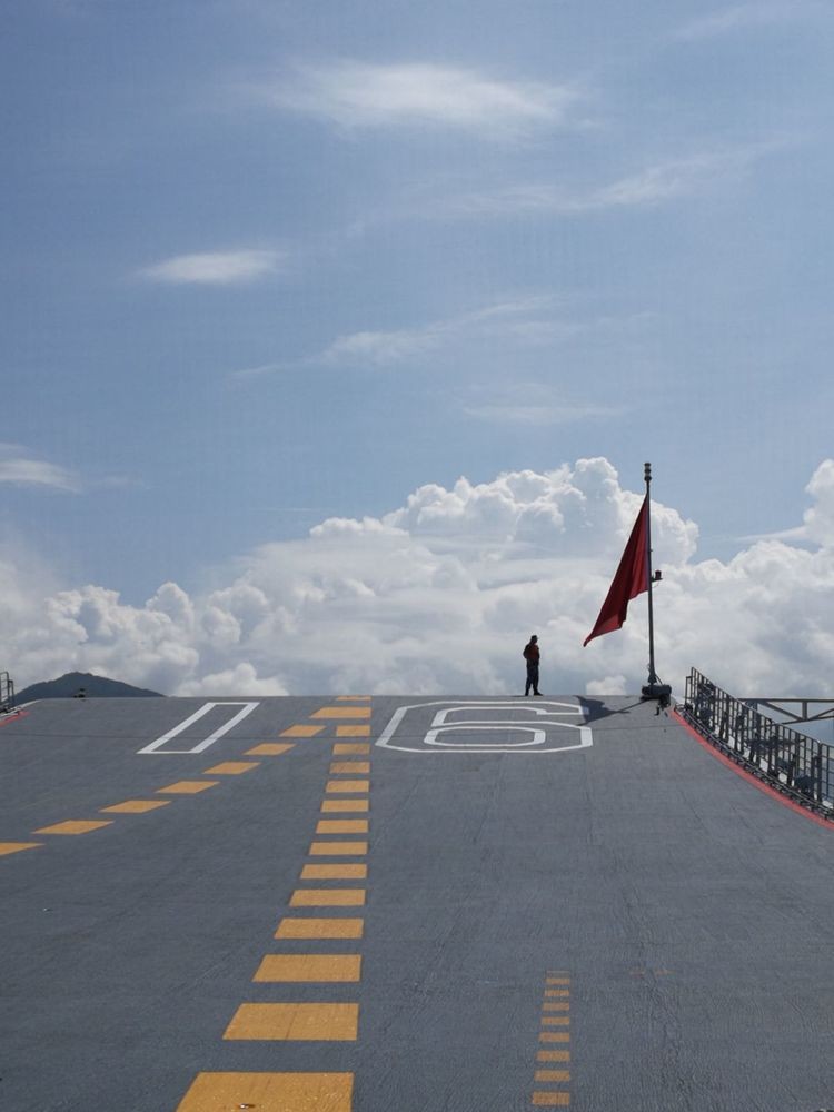 看看这起飞跑道有多长,全部都是钢铁结构,远方就是蓝天白云,格外震撼。