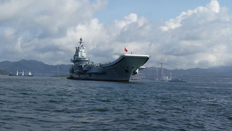 驳船经过近四十分钟航程,我们离辽宁舰很近了。