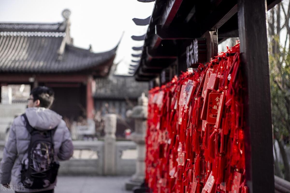 寒山寺位于苏州,以其优美的园林景色和佛教文化著称。信徒们通过传统的“挂愿牌”方式祈求姻缘。寒山寺悠久的历史与宁静的环境,为求姻缘的信徒们提供了理想的祈愿之地,并在现代社会中持续吸引着大量信徒。