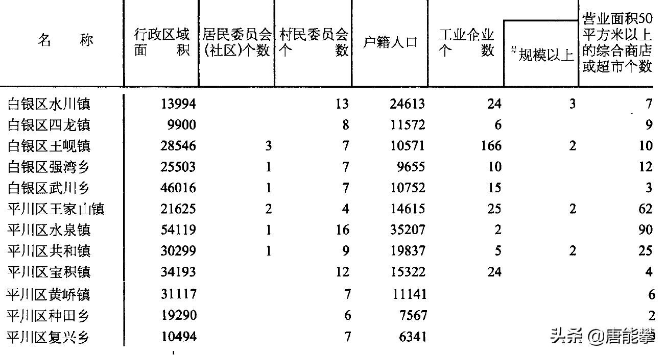 23平川区复兴乡2019年6303人2020年6341人22平川区种田乡2019年7533人2020年7567人21白银区强湾乡2019年9488人2020年9655人20景泰县上沙沃镇2019年10148人2020年10050人19白银区王岘镇2019年10753人2020年10571人18白银区武川乡2019年10362人2020年10752人17平川区黄峤镇2019年12378人2020年11141人16白银区四龙镇2019年11488人2020年11572人15景泰县漫水滩乡2019年11985人2020年12007人14景泰县中泉镇2019年14966人2020年14435人13平川区王家山镇2019年14615人2020年14615人12景泰县五佛乡2019年14948人2020年14873人11平川区宝积镇2019年15214人2020年15322人10景泰县正路镇2019年18812人2020年18822人9景泰县寺滩乡2019年19180人2020年19180人8平川区共和镇2019年19739人2020年19837人7景泰县红水镇2019年20050人2020年19967人6景泰县草窝滩镇2019年22574人2020年22086人5景泰县喜泉镇2019年23850人2020年23762人4白银区水川镇2019年24616人2020年24613人3景泰县芦阳镇2019年27587人2020年27313人2平川区水泉镇2019年36443人2020年35207人1景泰县一条山镇2019年55865人2020年55633人