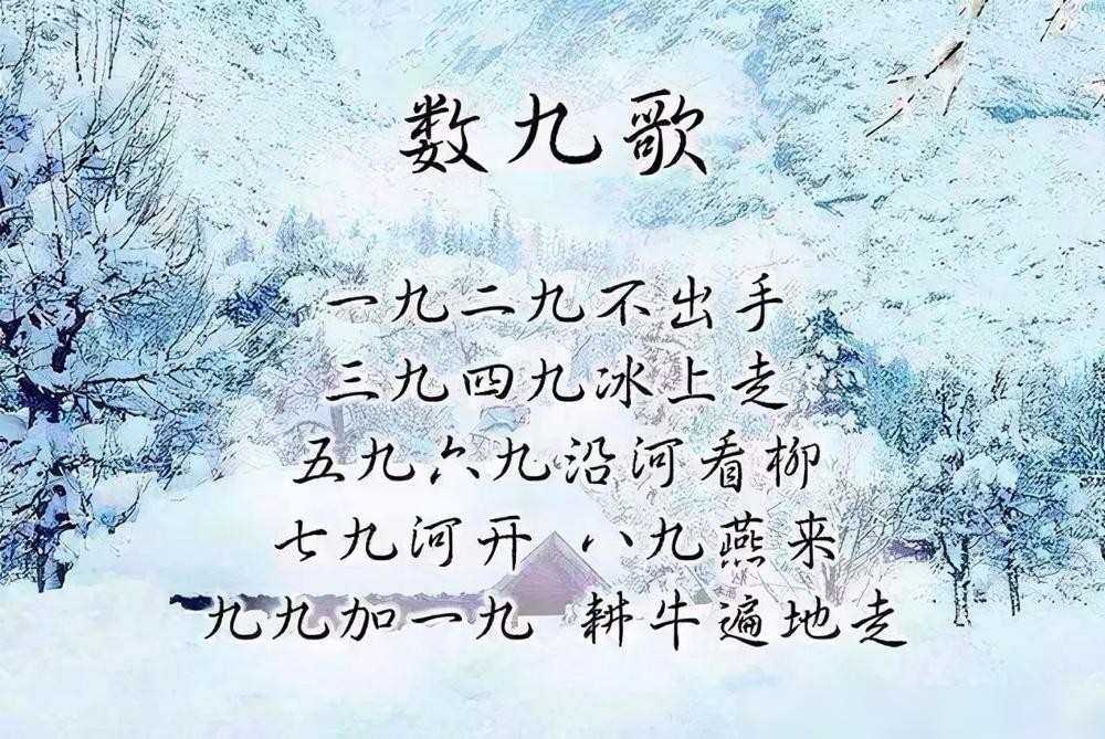 在冬至时日,古人以天干地支记录节气变化,并用“数九”来形象地描述从冬至到春分这段时间的冷暖变化。“数九”中的“数”并不是数学上的数字,而是指数的意思。