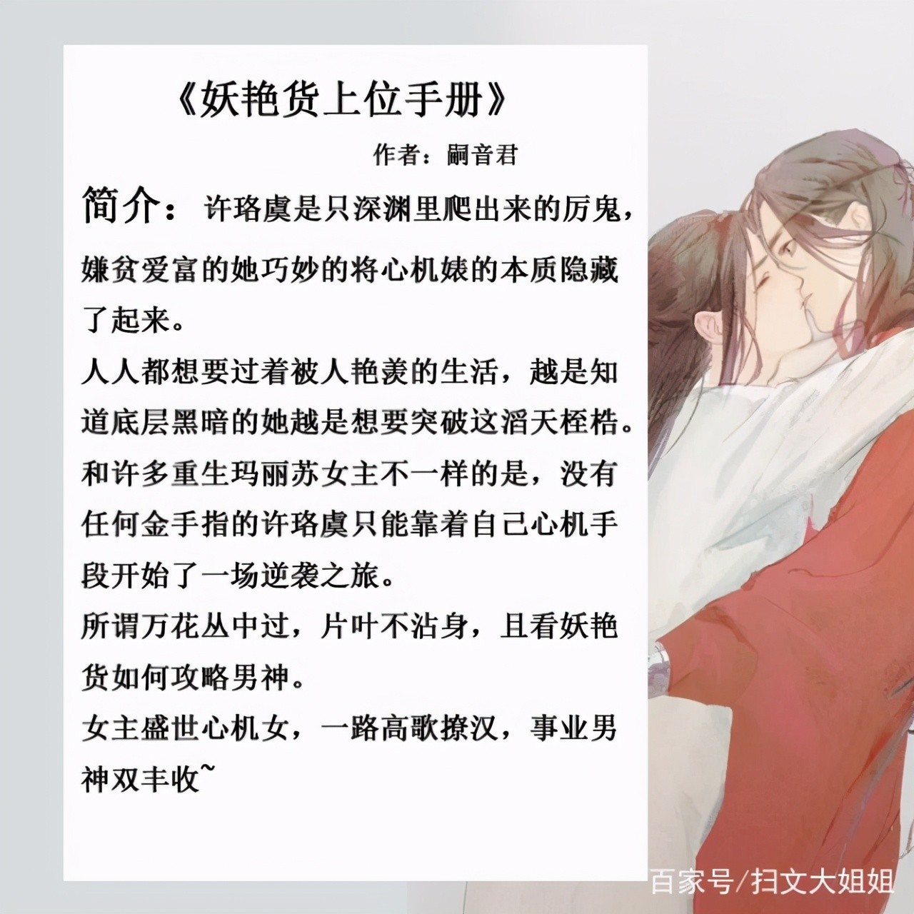 书评:女主重生心机女,上一世很惨所以重生之后拼命利用一切来提升自己,到处撩小哥哥,最后攻下男主,有cp,男主只有一个,不甜不苏。女主是一个能在发现自己走错路了之后及时调整,即使在迷茫的时候也会迅速地看透自己的内心知道自己真正想要的人,和许多重生玛丽苏女主不一样的是,没有任何金手指的女主,只能靠着自己心机手段开始了一场逆袭之旅。作者文笔流畅,此文非传统意义1v1,不要过早站队,推荐看~