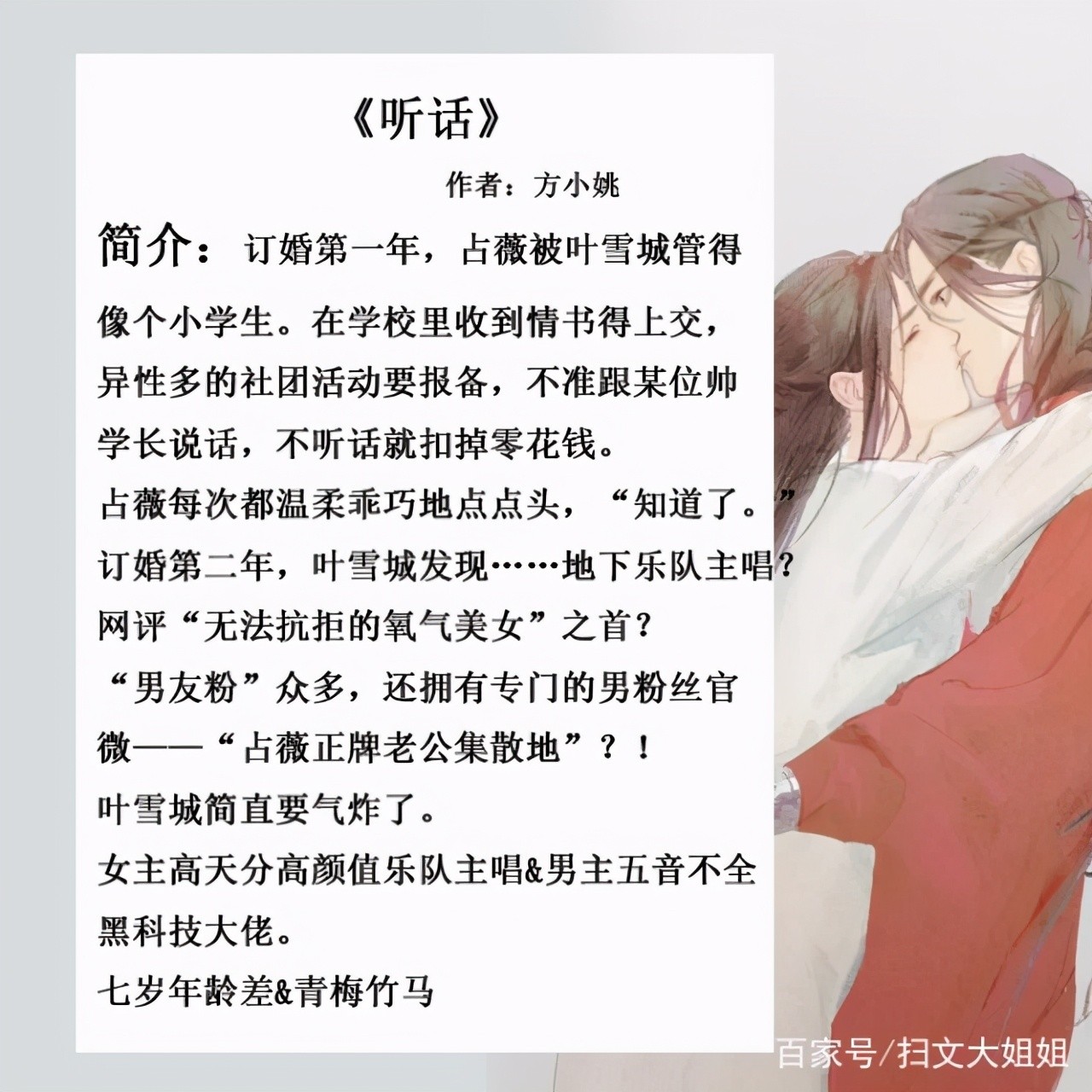 书评:女主学生,男主高富帅,女主很小就喜欢男主,一直以为男主喜欢的是她姐姐,男主其实很早也喜欢女主,但是当时因为女主太小拒绝了,女主的表白出了国,回国后,因为女主家庭原因订了婚,女主悄悄成为乐队主唱,男主控制欲超强不同意,后来误会解开两个人就发糖了。