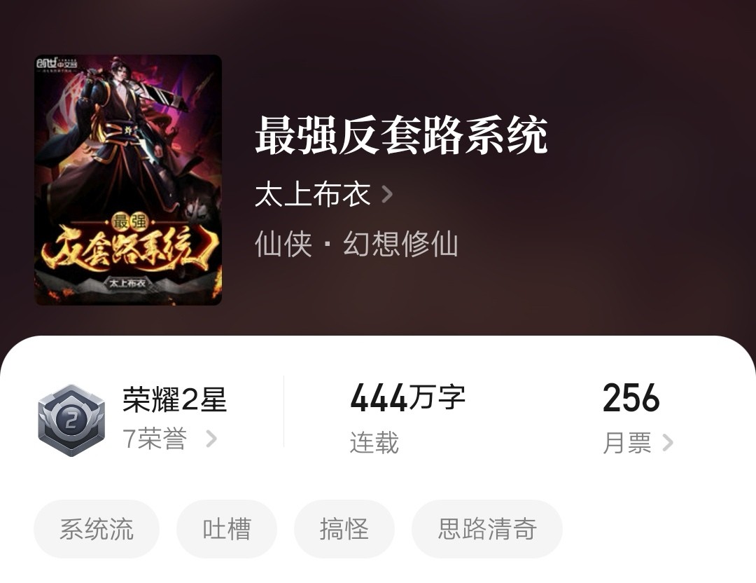 说是反套路,是因为与一般系统不同,这个系统给予强大奖励需要做任务,主角用苟怂的行为避免系统发给他任务,只拿个不用做任务的保底基本奖励就满足了;其实也是一种套路,是因为开书一直以来都是如此选择,主角只会选择最后一个选项,这点上,看着看着就不新鲜了。