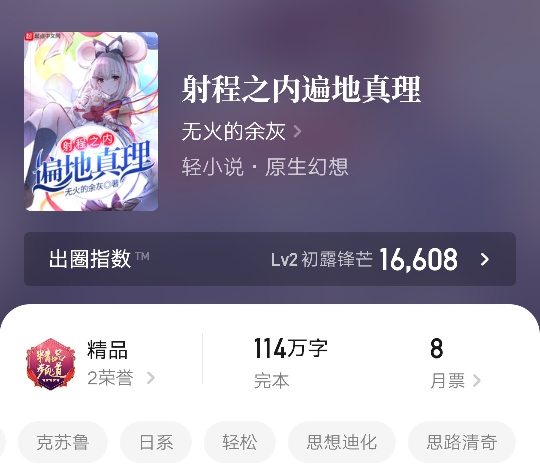 - 五本文风轻快、剧情紧凑的二次元小说,作者构思巧妙,看了都说好