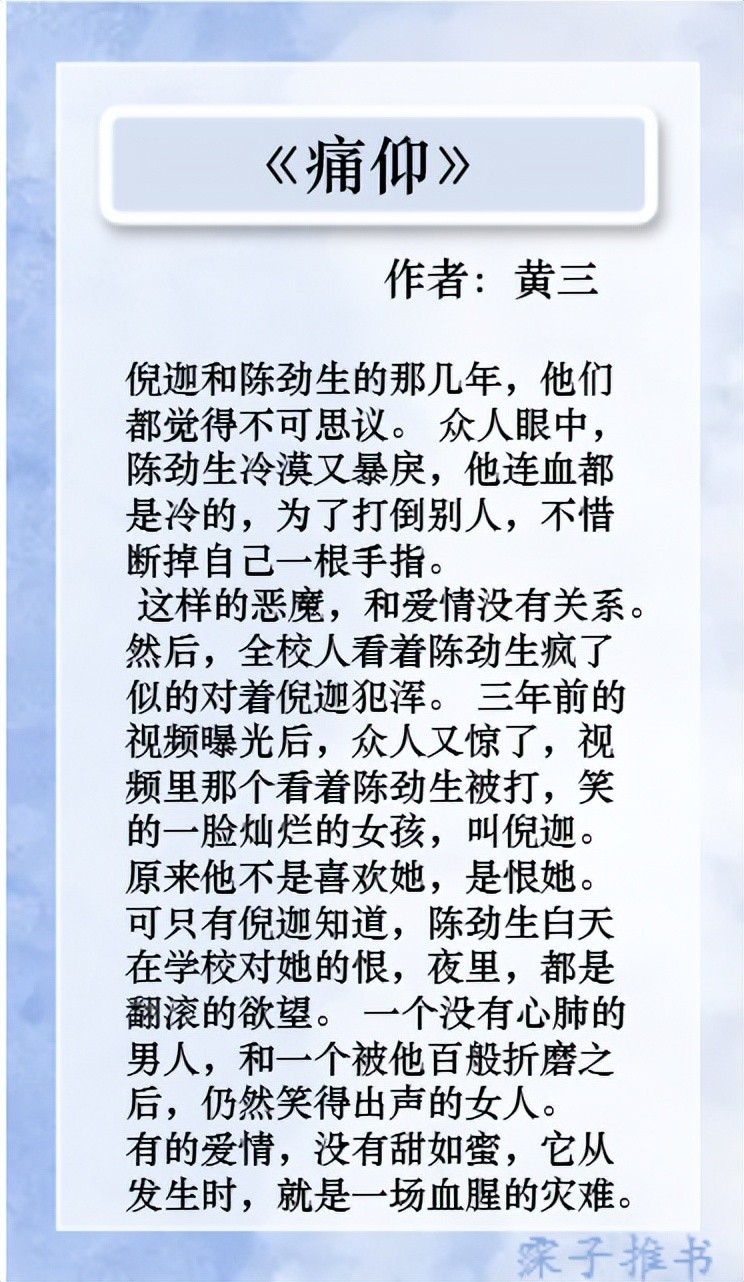简评:小说叫《痛仰》,还有另一个名字叫《向生》。向死而生陈劲生。愿所有心有羁绊的人,都能拨开这纷扰离乱的世间,一次又一次重逢。