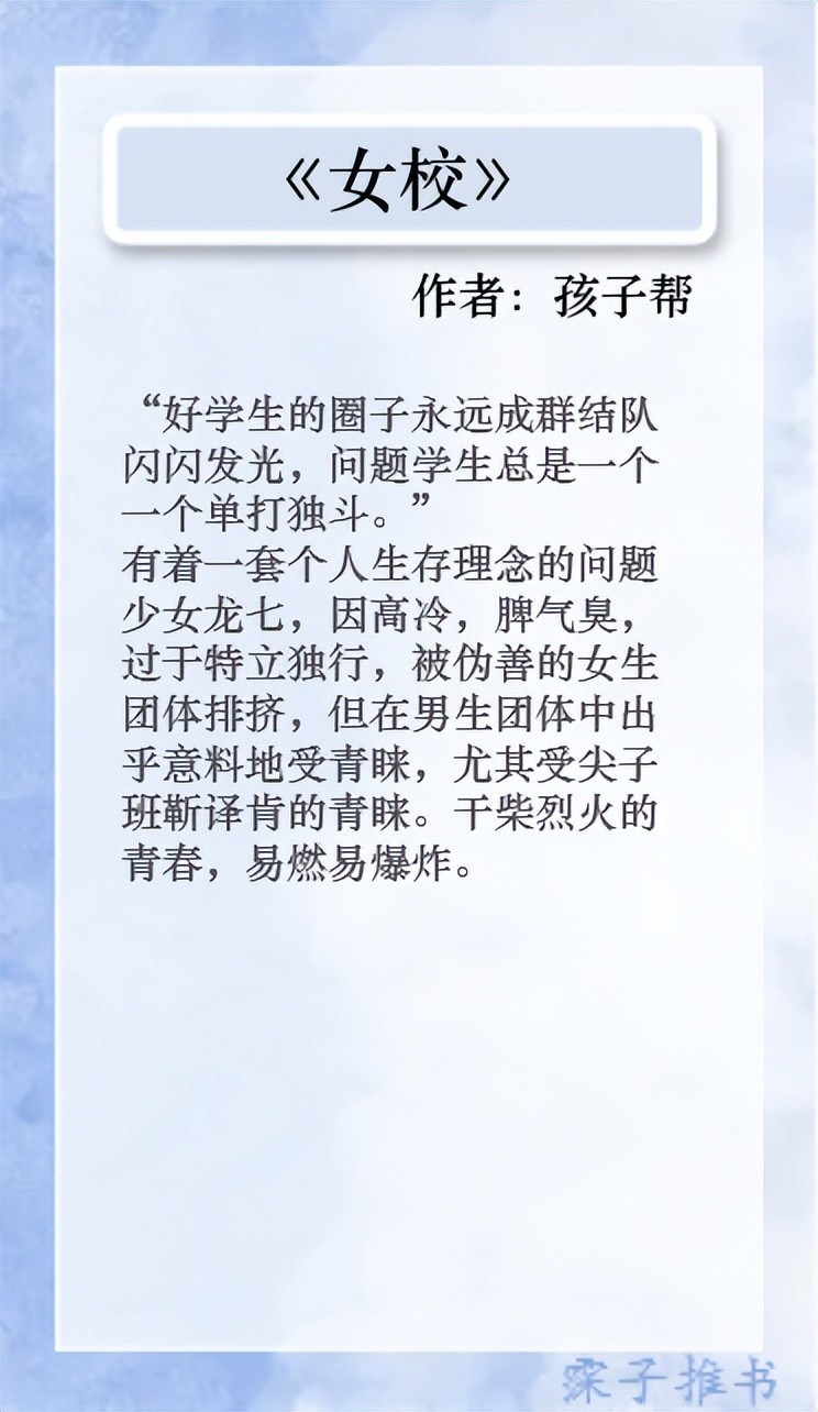 作者总是以冷酷的笔触,一一道来这热烈的,痛苦的,压抑的文字。孩子帮的文字有一股抚平人心的力量,她叙述的时候不急不缓,冷冷静静,有时又很深刻。总之,互相深爱的人,怎么能不在一起?