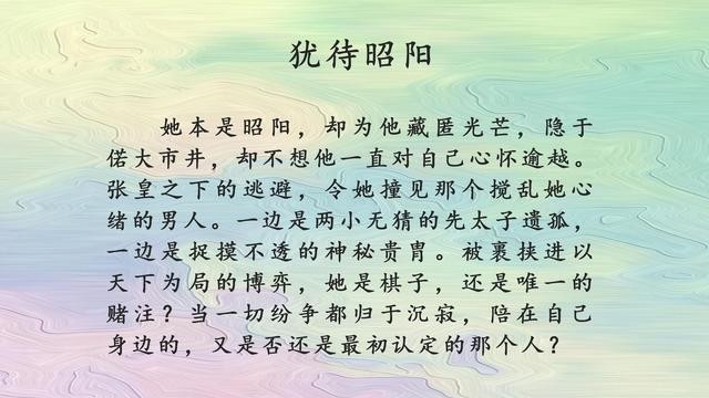 继小说《独家记忆》后,木浮生的经典古言《犹待昭阳》强势来袭