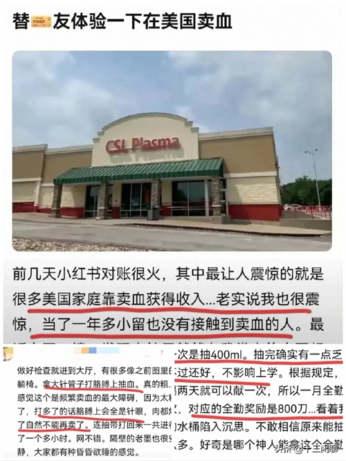 41岁的单亲妈妈西尔每周二四准时打卡,抽完血直奔沃尔玛买打折面包。美国法律规定每年可卖血104次,比中国允许的24次高出4倍多!更魔幻的是血浆站的"饥饿营销":首次卖血送T恤,拉新人奖励超市卡,连续8次打卡再奖1000美元,活脱脱现实版"卖血战令"。