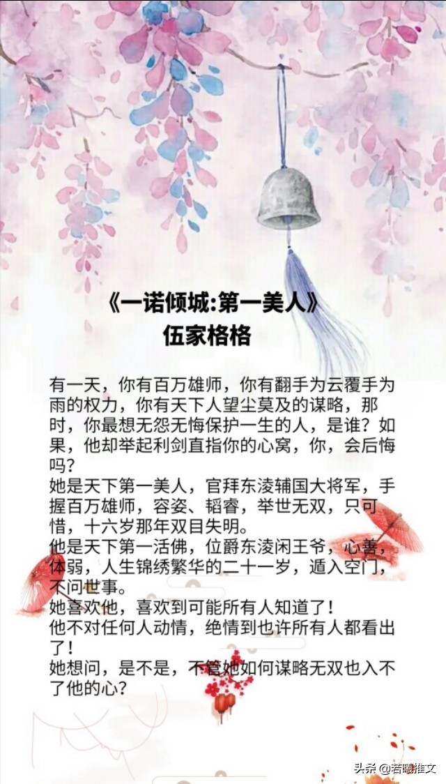 推荐理由:女主是第一美人,有勇有谋,可以双目失明,男主是第一活佛,心善,体弱,女主先喜欢上的男主,可那时候男主不喜欢任何人,看女主怎么追上这个佛的……